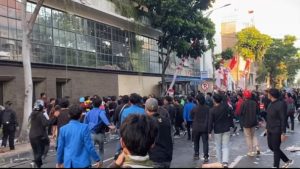 Surabaya,Seputarindonesia.net – Aksi demonstrasi mahasiswa di depan Markas Polrestabes Surabaya, Sabtu (30/8) sore, berakhir ricuh. Aksi yang sejak awal berlangsung damai mendadak memanas diduga akibat disusupi kelompok berhaluan anarko.
