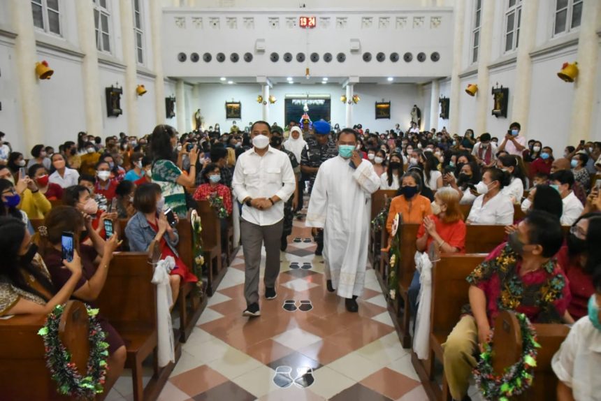 SURABAYA-Wali Kota Surabaya Eri Cahyadi bersama Forum Komunikasi Pimpinan Daerah (Forkopimda) Kota Surabaya berkeliling mengecek pengamanan gereja-gereja di Kota Pahlawan, Sabtu (24/12/2022) malam. Hal ini dilakukan untuk memastikan umat Kristiani dapat melakukan Natal dengan rasa aman dan nyaman.