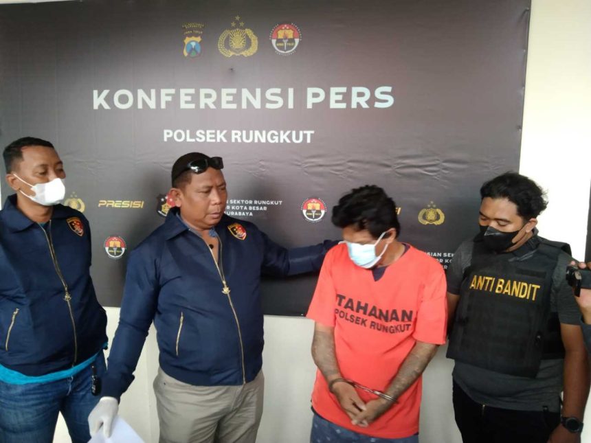 Tersangka berinisial T.R asal Rungkut Tengah itu datang ke Rungkut Kidut Gang Hj. Supiah dengan mengendarai sepeda motor.