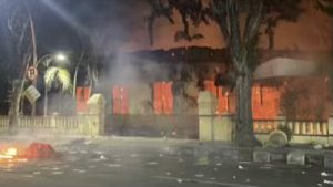 Namun, kini bangunan bersejarah tersebut luluh lantak akibat kobaran api dari aksi massa. Seluruh bangunan hangus terbakar, hanya menyisakan masjid di dalam kompleks yang selamat dari amukan api.