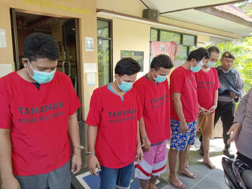 SURABAYA– Lima orang pelaku pencurian dibekuk Reskrim Polsek Mulyorejo Surabaya. Bahkan, satu diantaranya dihadiahi timah panas di kaki. Empat lainnya juga sempat dihajar warga.