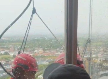 Terombang-ambing di Lantai 26, Satu Pekerja Ascott Waterplace GugurApartemen Ascot PTC Surabaya Saat Hujan dan Angin Kencang.