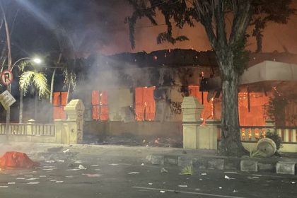 Polsek Tegalsari Surabaya Dikepung Massa, Gedung Dan Sejumlah Motor Dibakar di Jalan Basuki Rahmat
